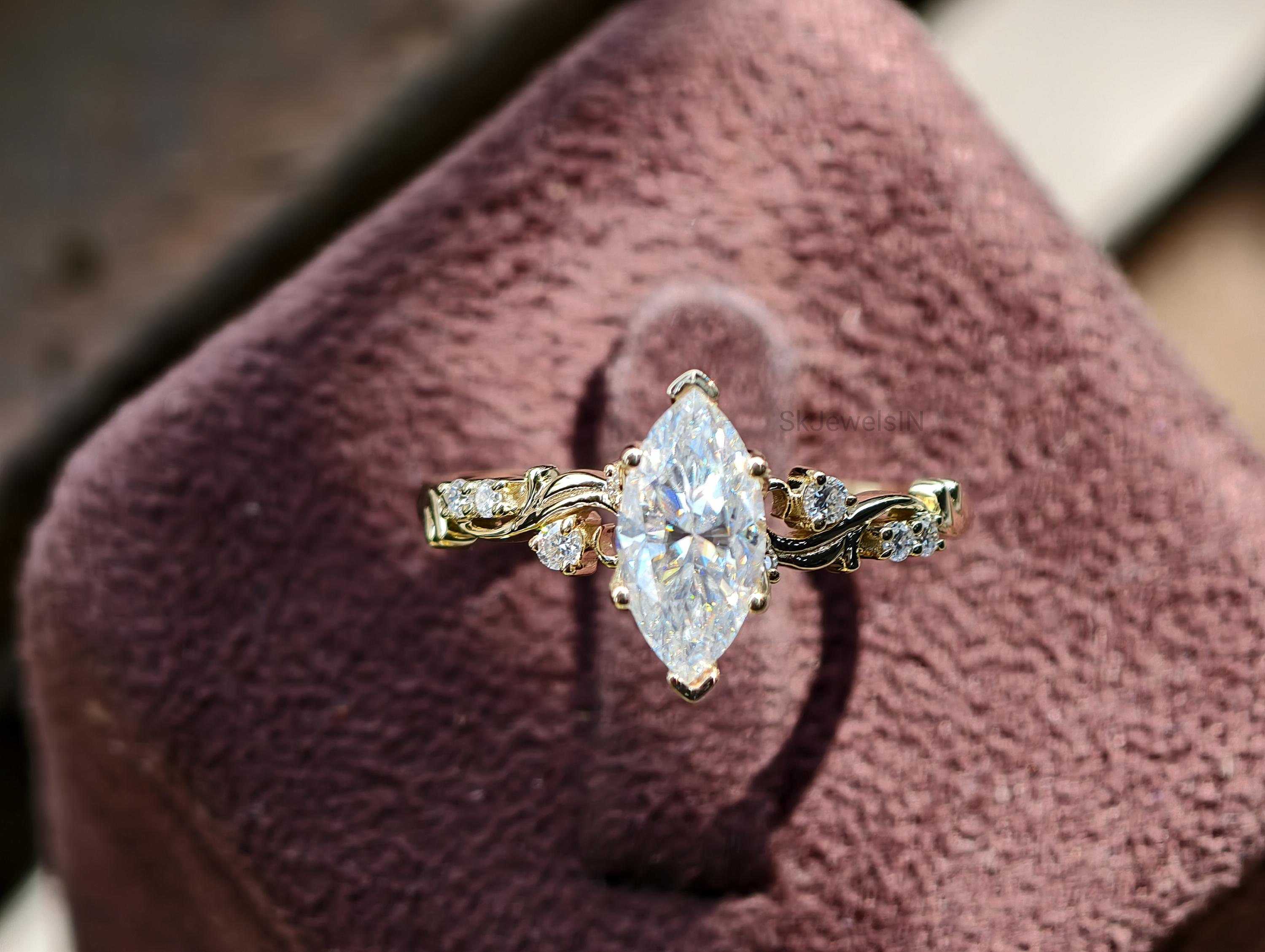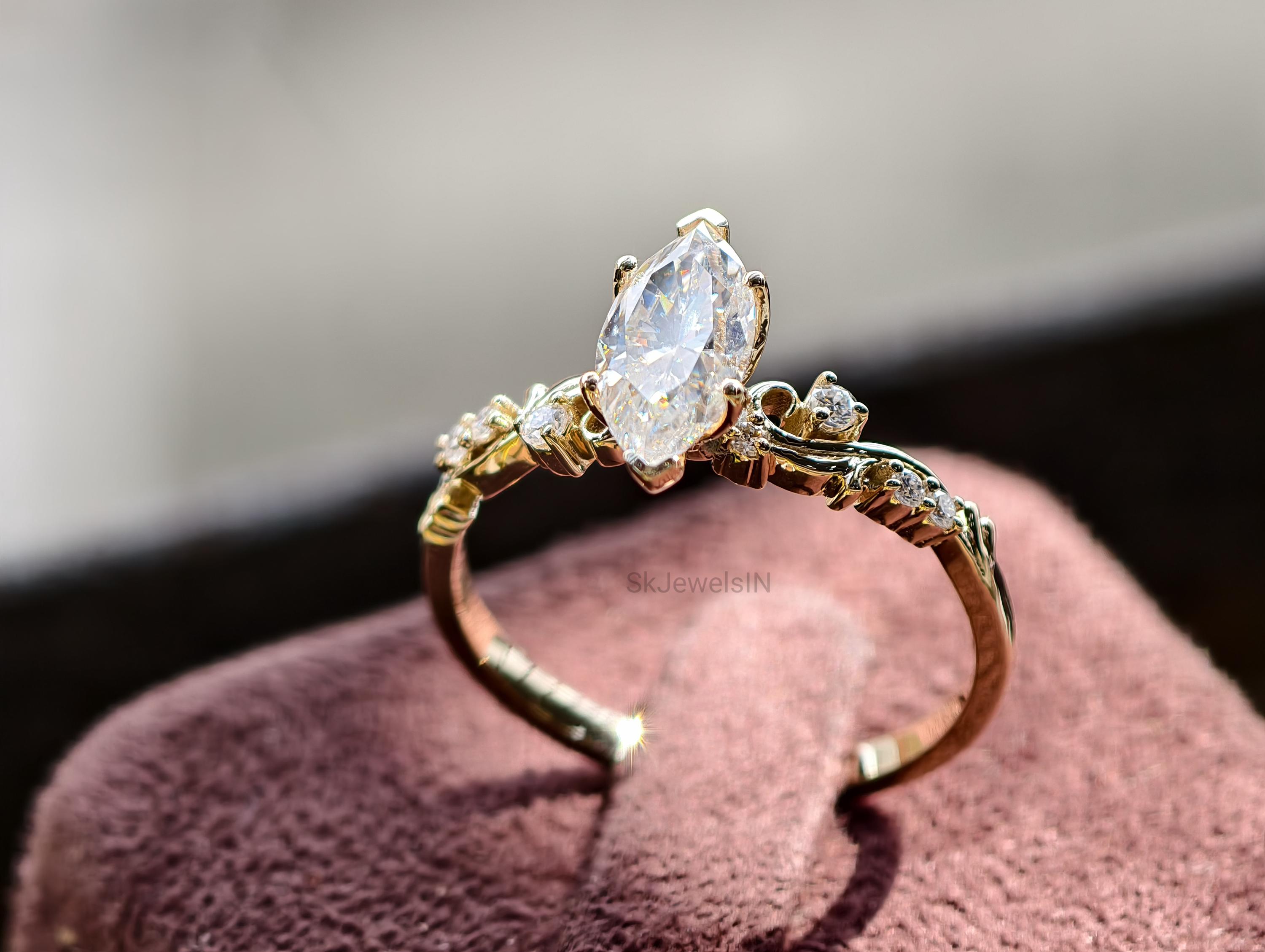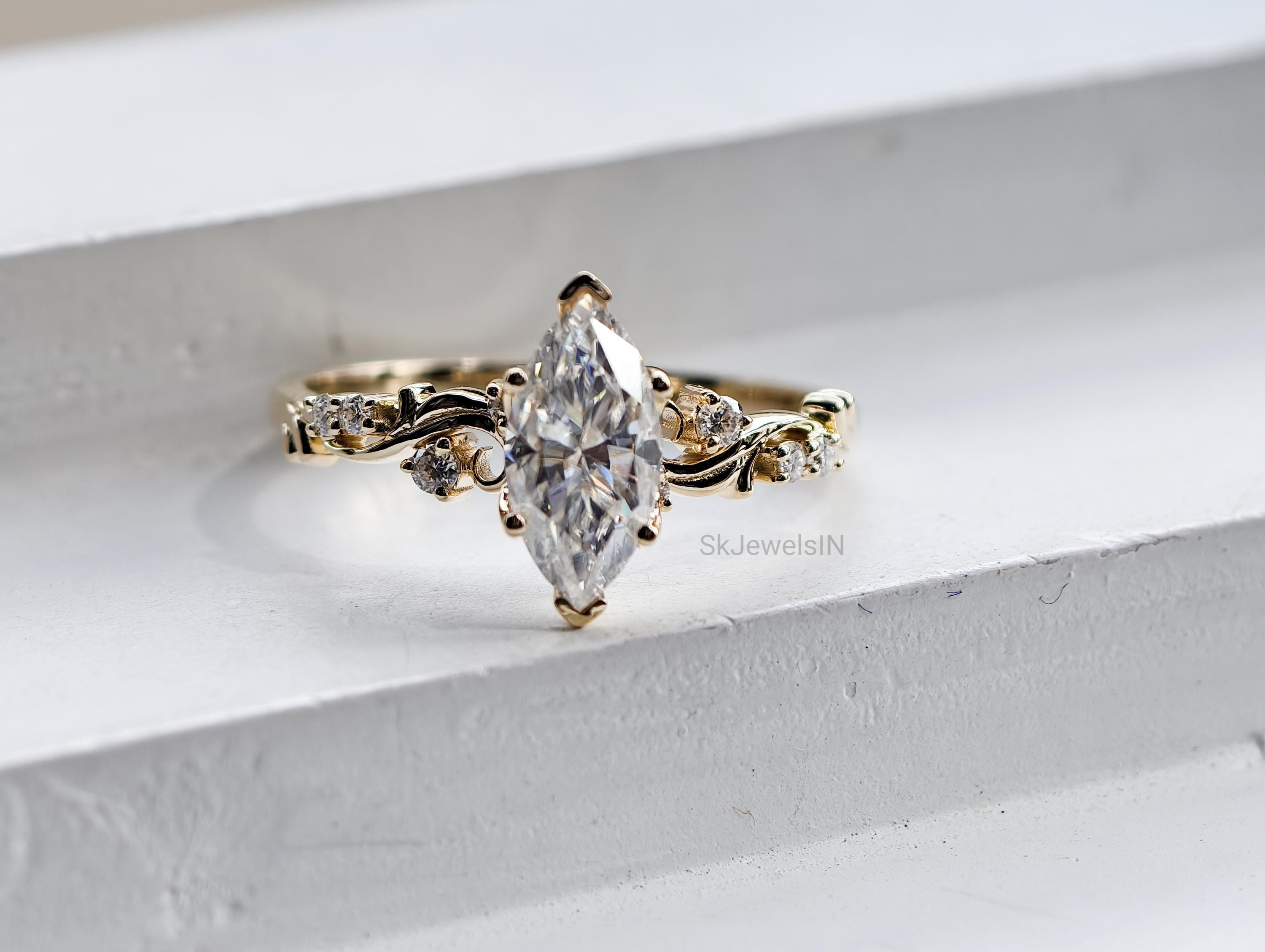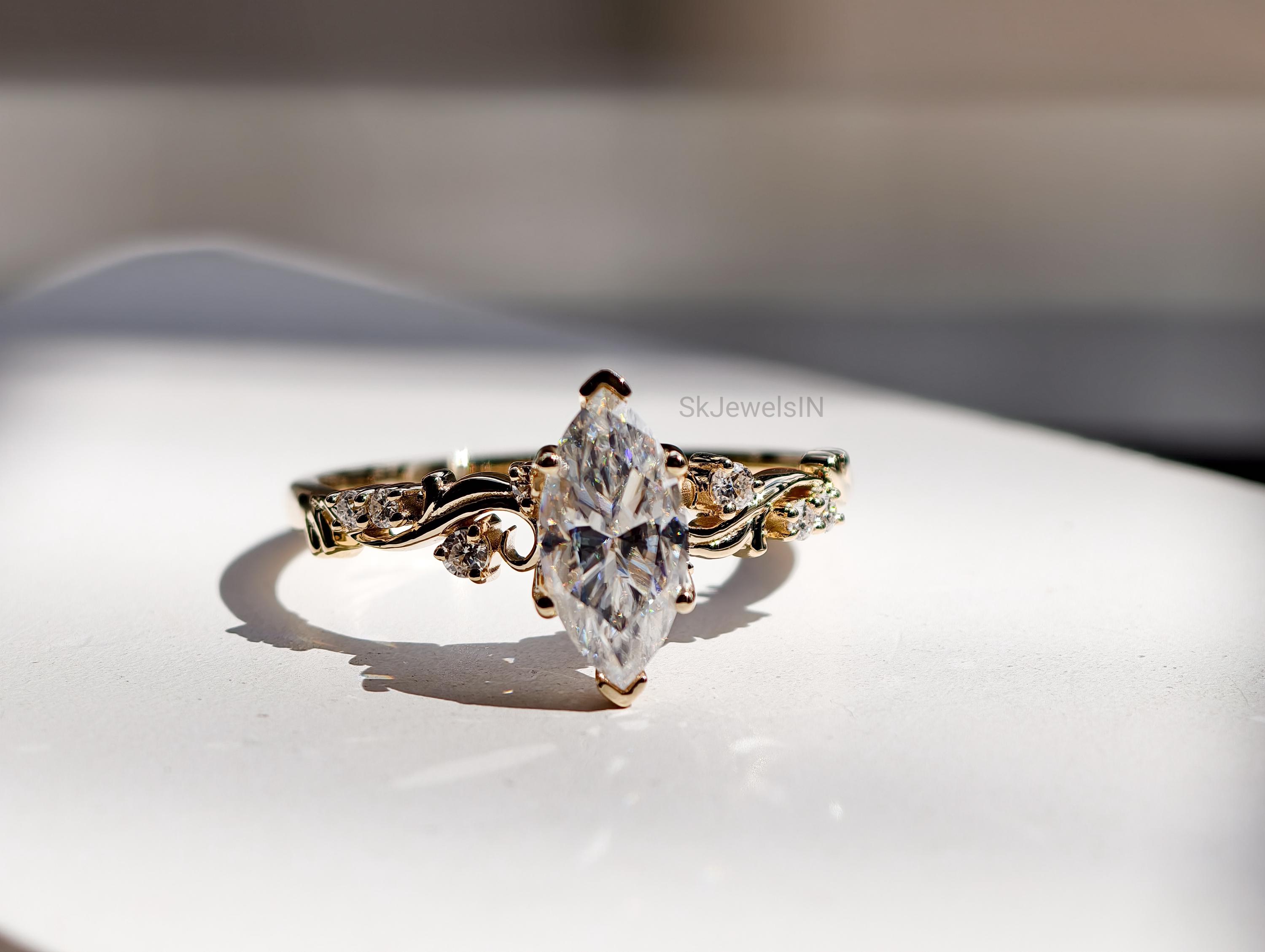 Vintage Marquise Moissanite Engagement Ring, Antique Diamond Ring, Unique Wedding Ring, Anniversary Gifts, Art Deco Ring, Bridal jewelry