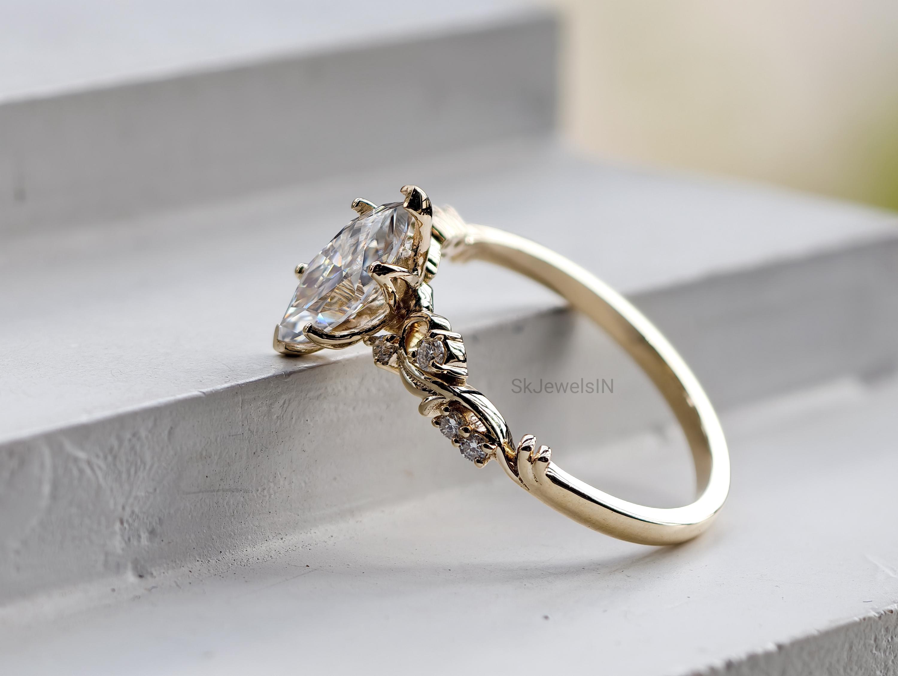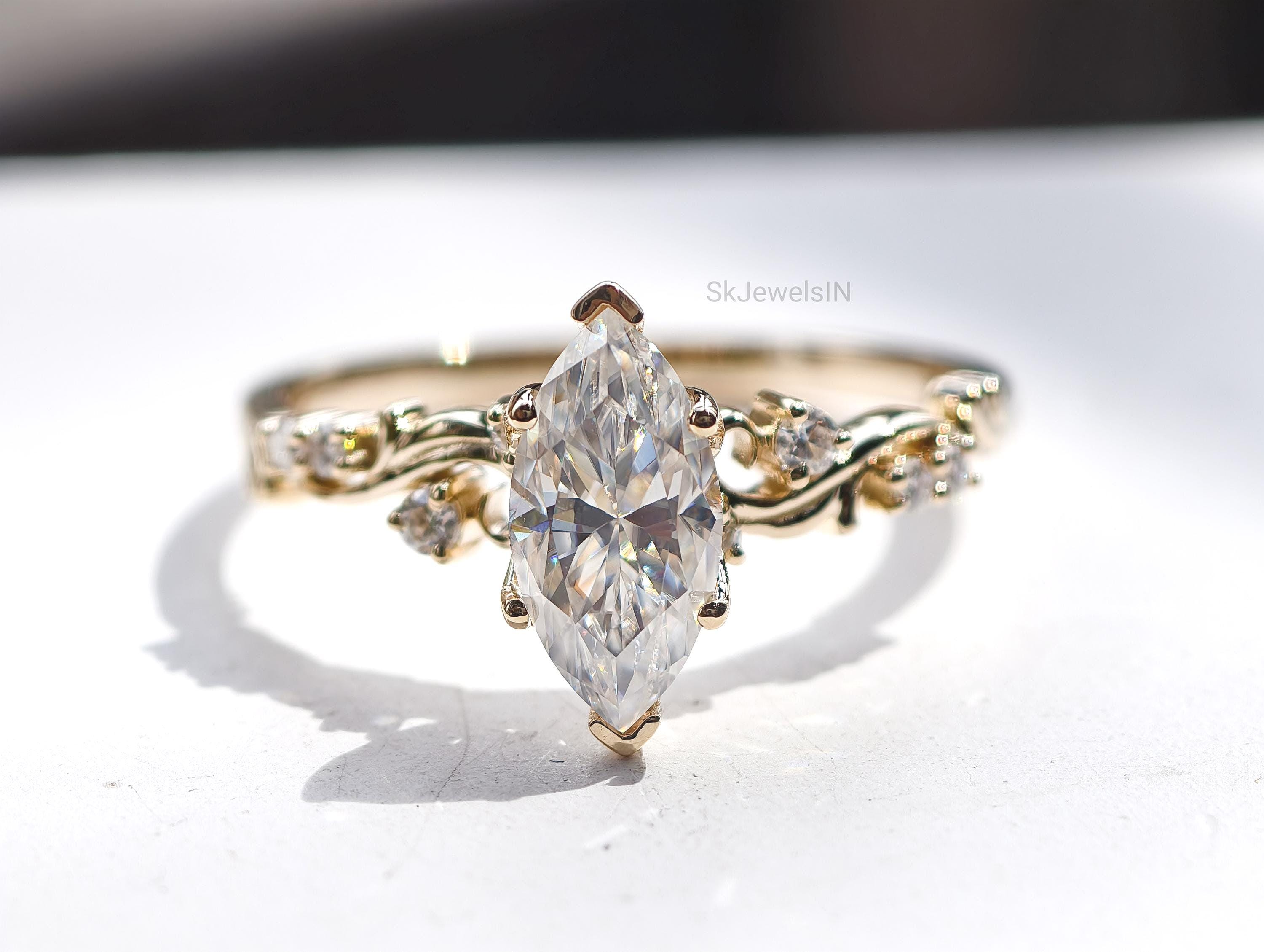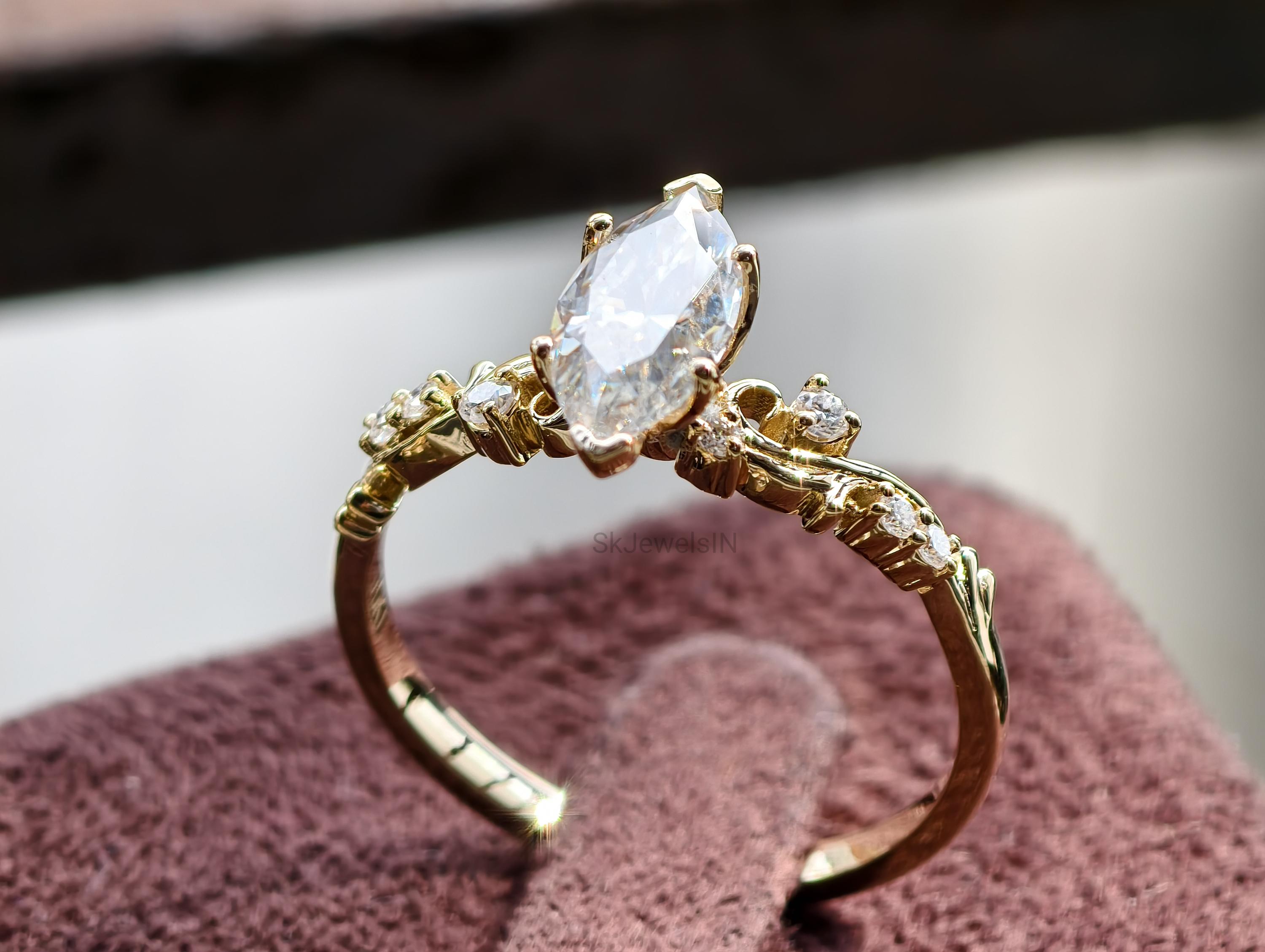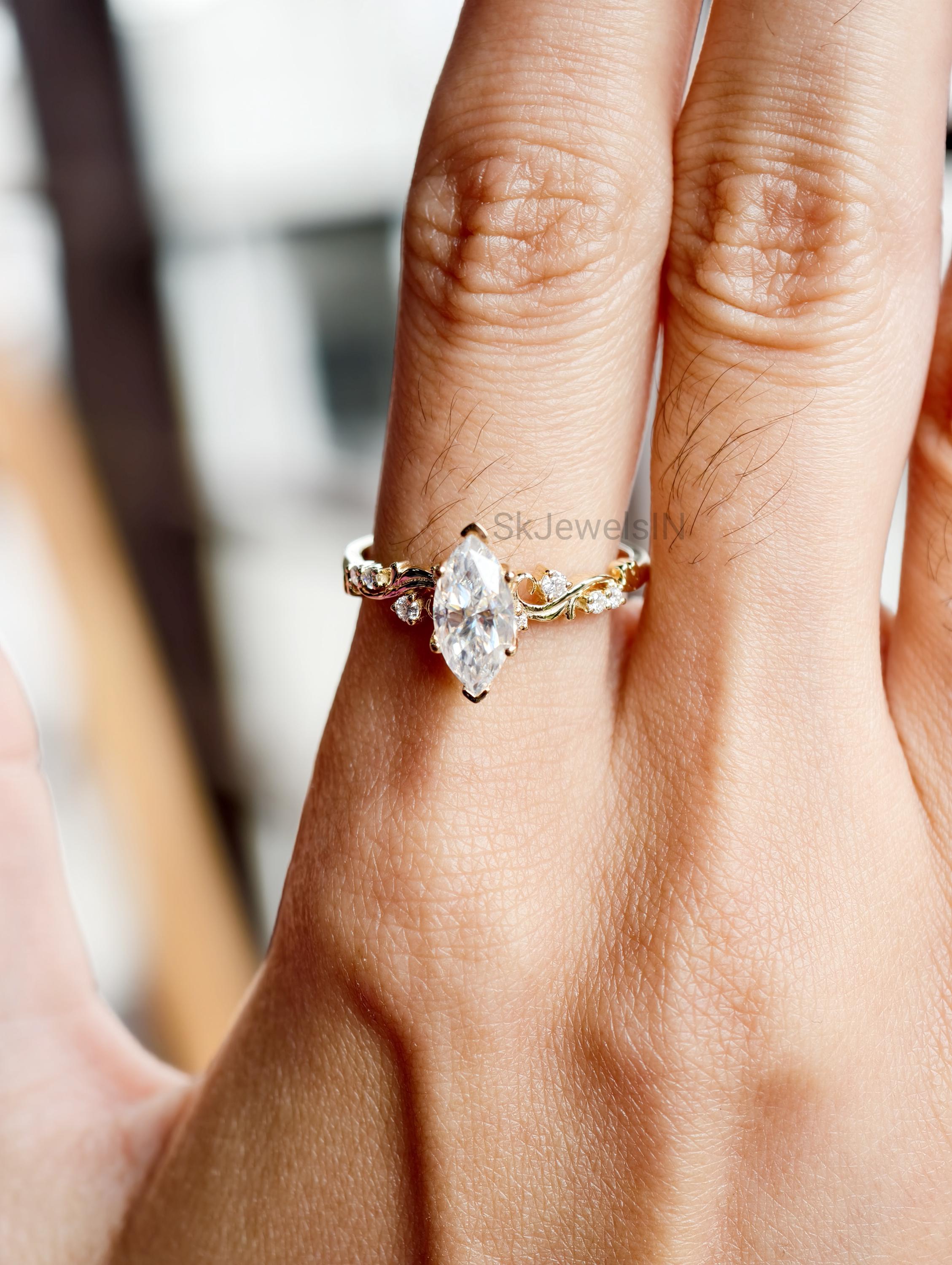 Vintage Marquise Moissanite Engagement Ring, Antique Diamond Ring, Unique Wedding Ring, Anniversary Gifts, Art Deco Ring, Bridal jewelry