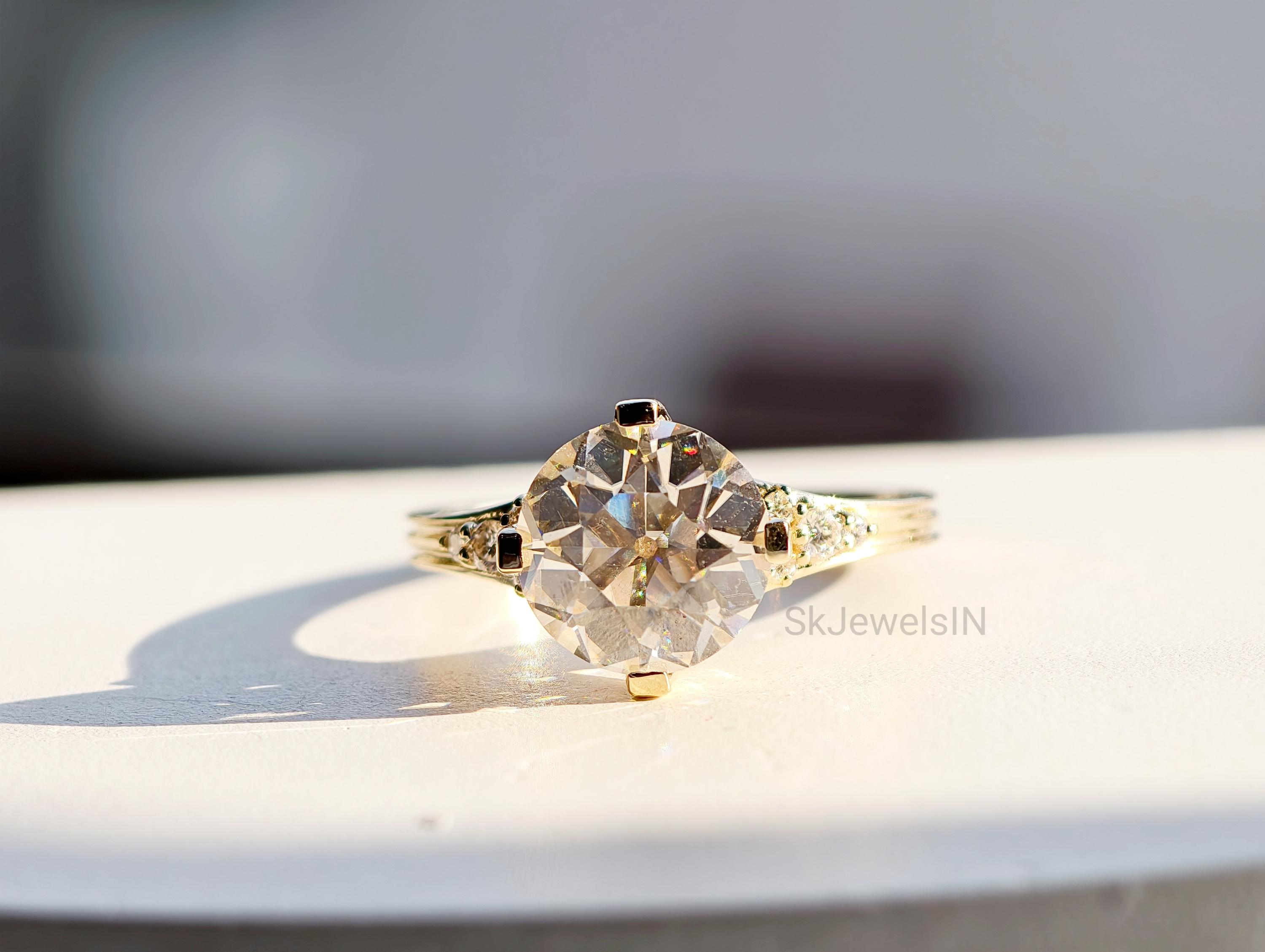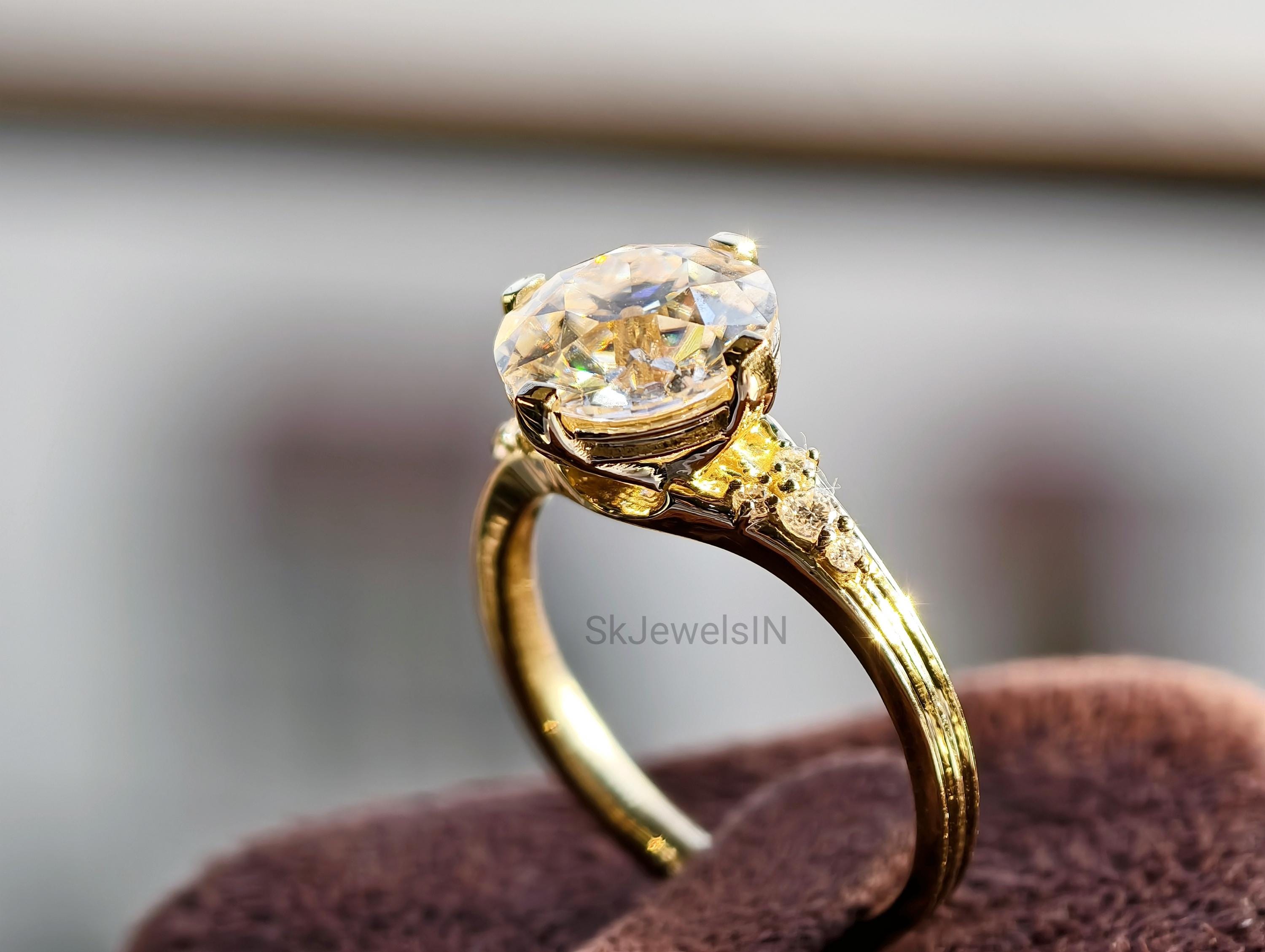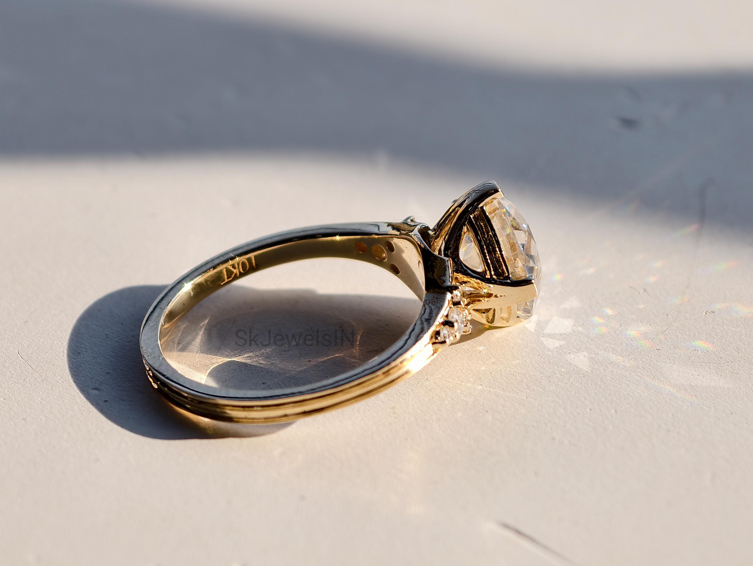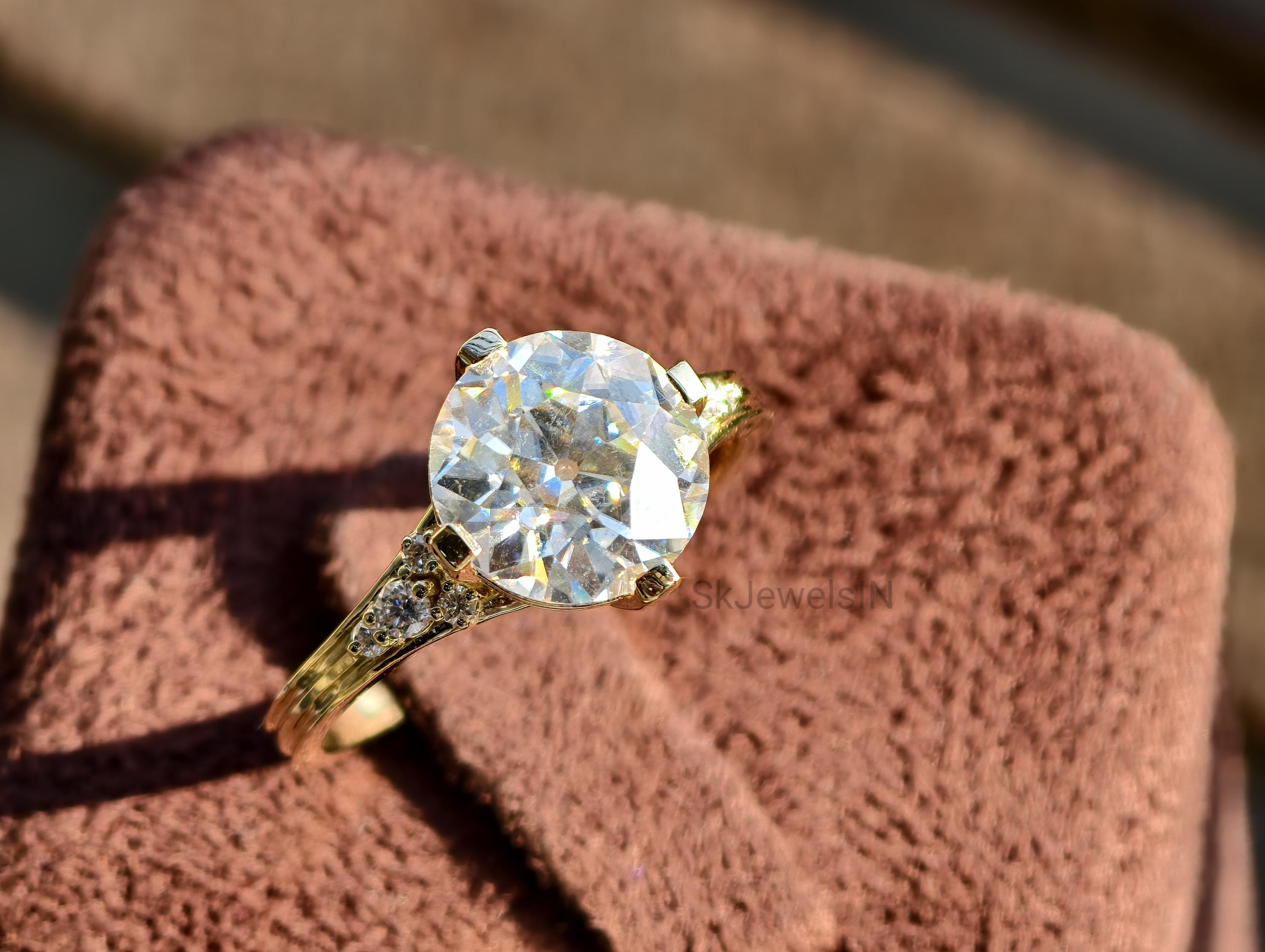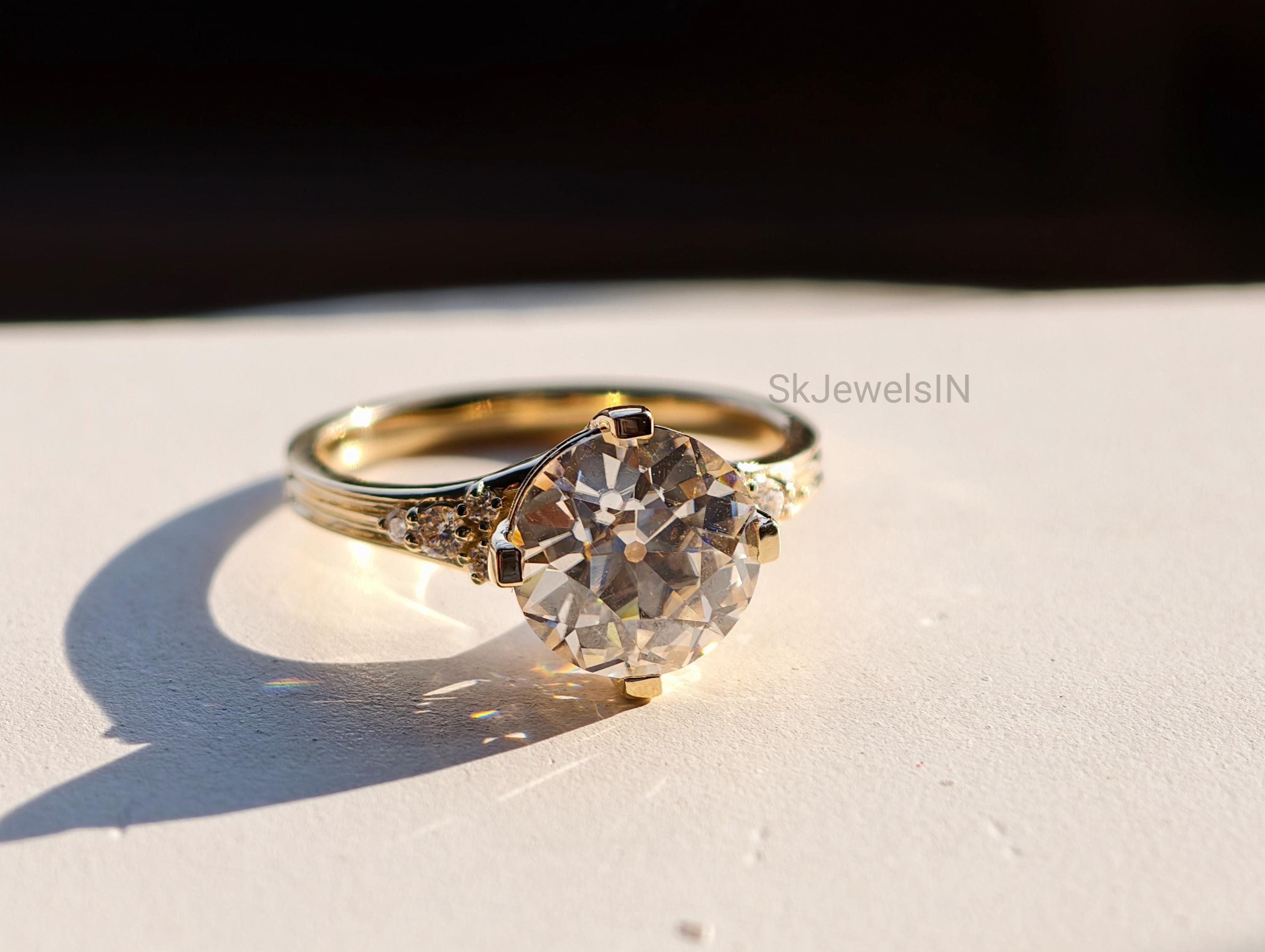 Old Mine Diamond Engagement Ring,10K Gold Round Old European Cut Moissanite Ring, Wedding Ring, Proposal Ring For Her Antique Diamond Ring