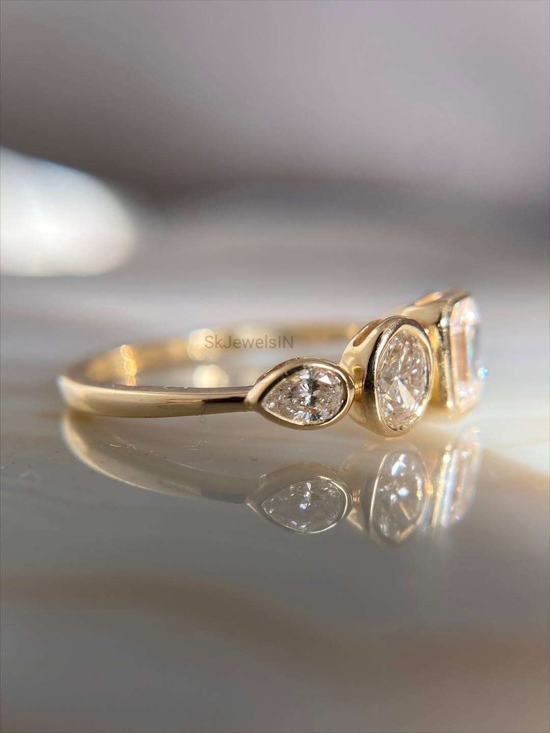 Multi Stone Moissanite Ring, 14K Gold Bezel Set Five Stone Ring, Emerald Diamond Ring, Art deco Gift ring for women, Gifts for Daughter