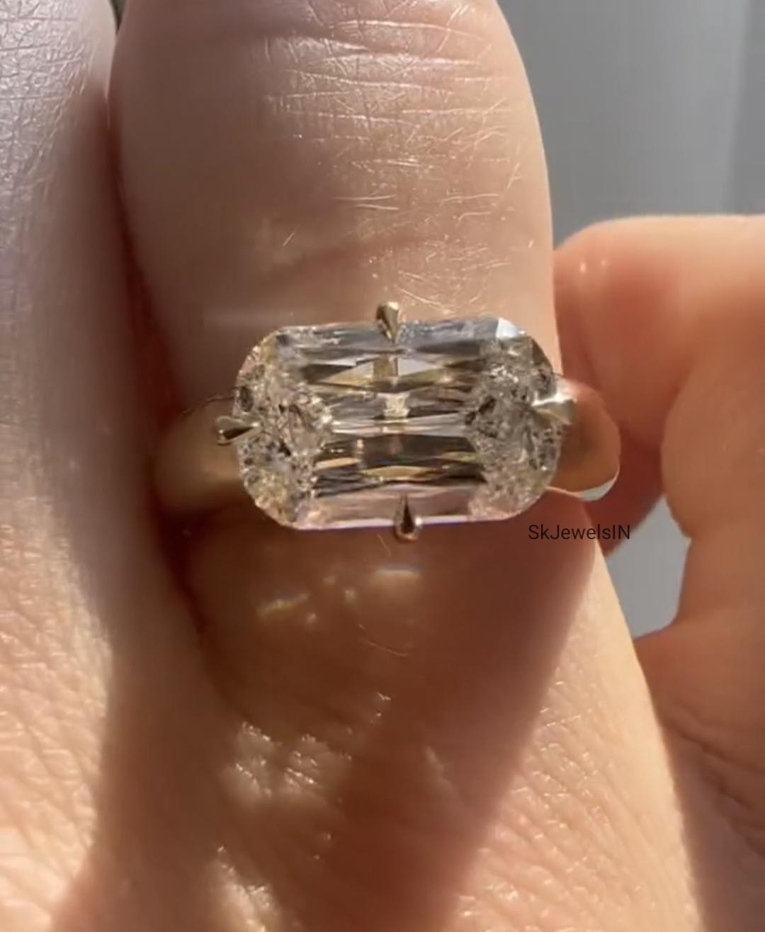 2.50 CT Cushion Criss cut, Moissanite Diamond Bezel Engagement Ring 14K Gold East West Bezel Set Engagement Ring,