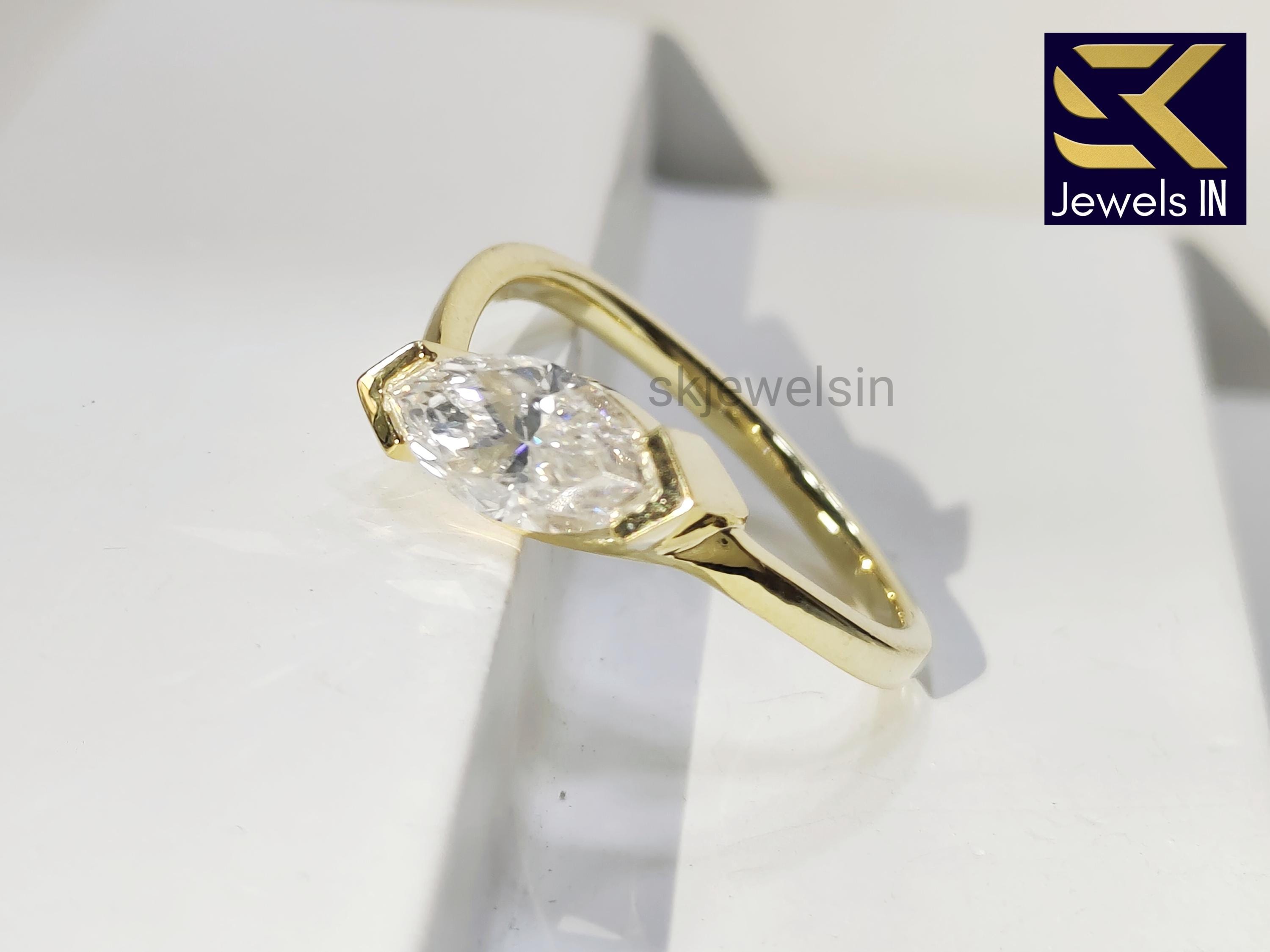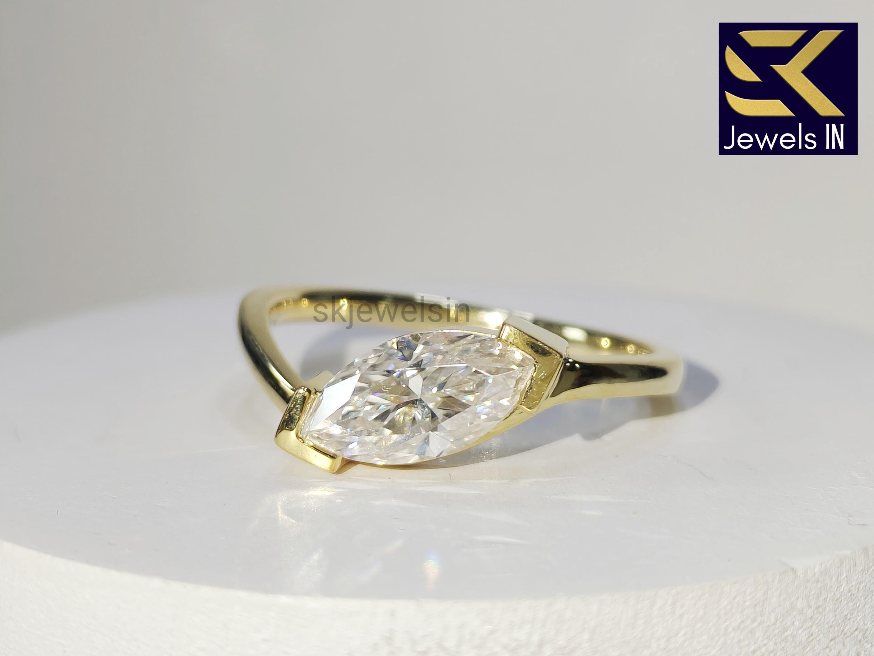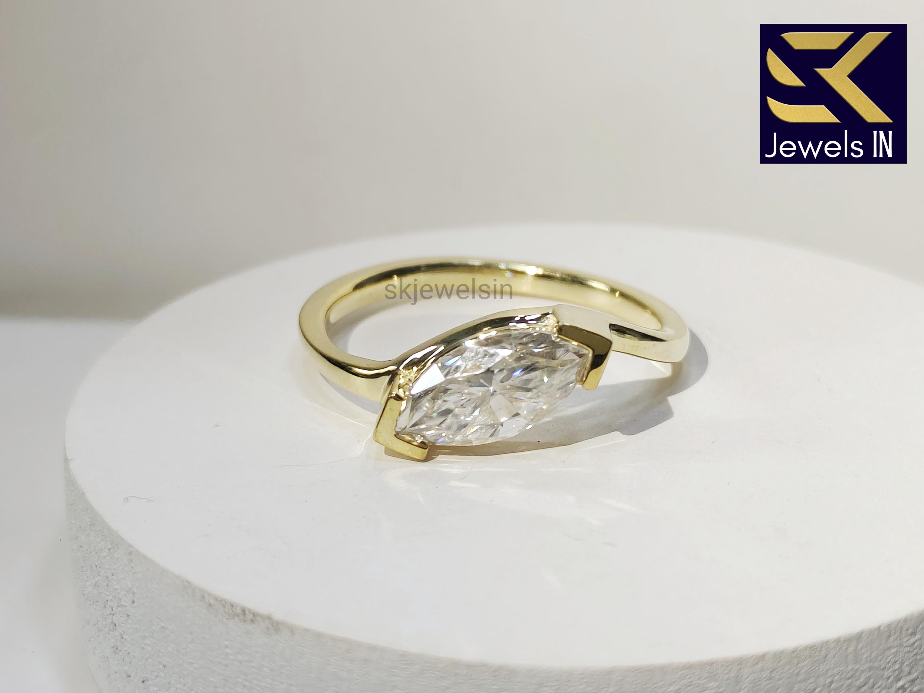 East West Marquise Engagement Ring, 14K Gold Solitaire Moissanite Wedding Ring, Anniversary & Promise Ring For Her, Christmas Gifts
