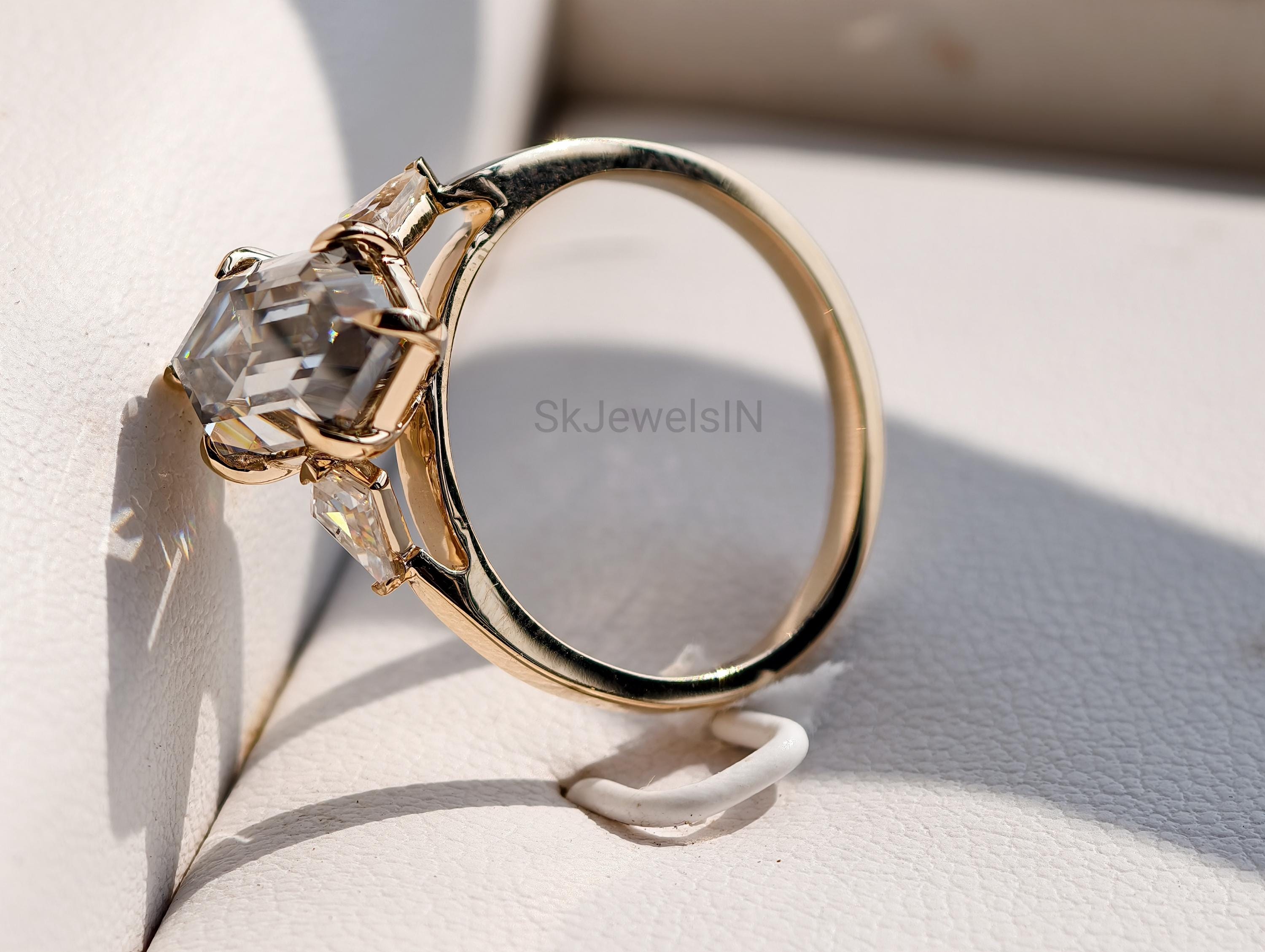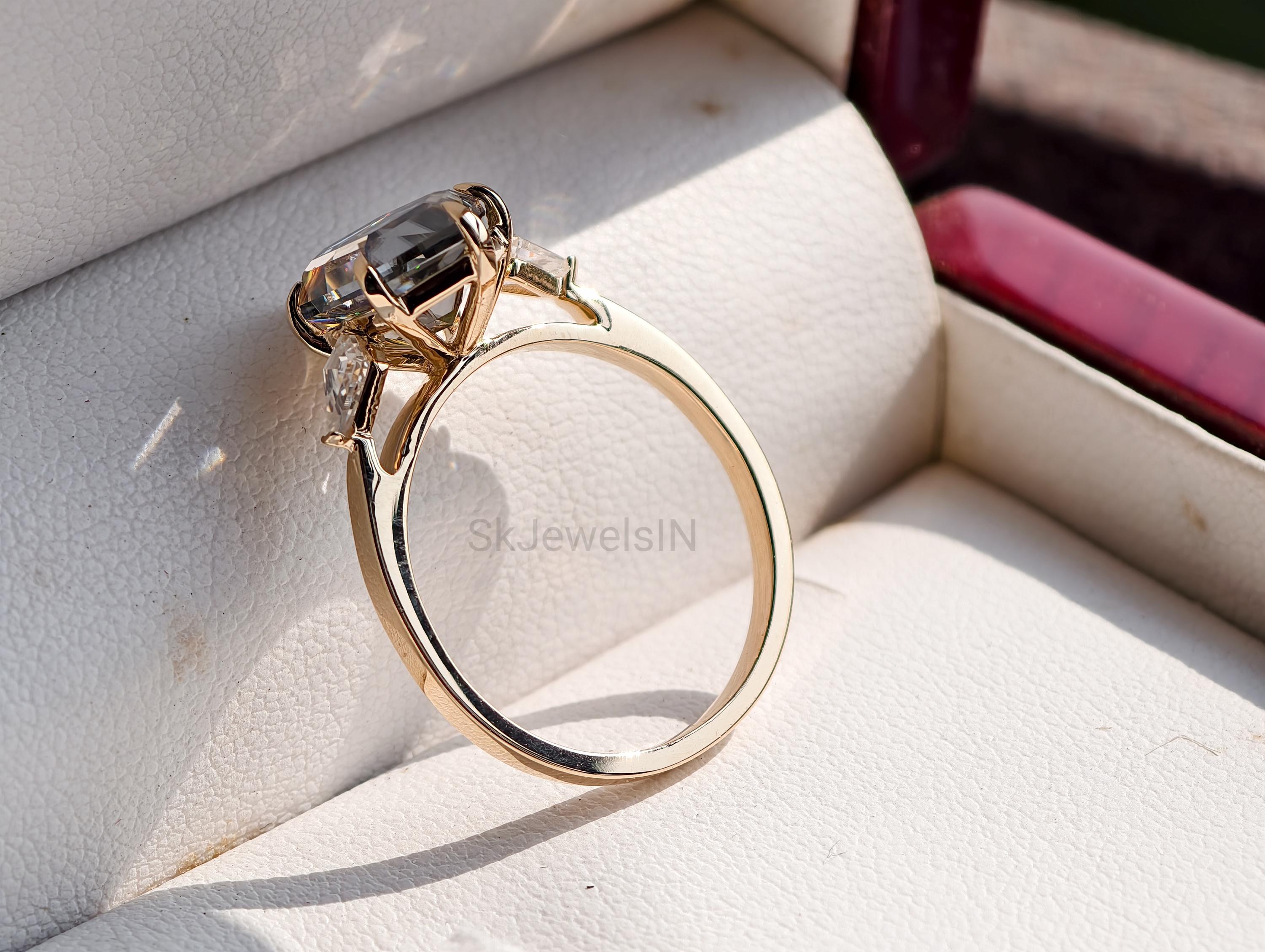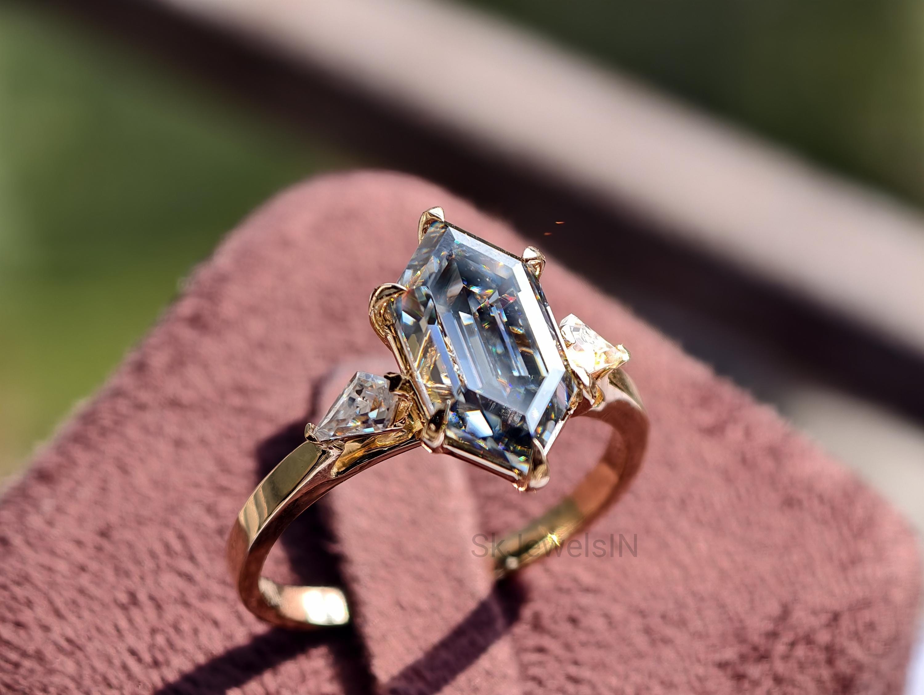 Grey Moissanite Dutch Marquise Engagement Ring 2 CT Elongated Hexagon Step Cut Ring 14k Gold 3 Stone Kite Wedding Ring Art Deco Promise Ring