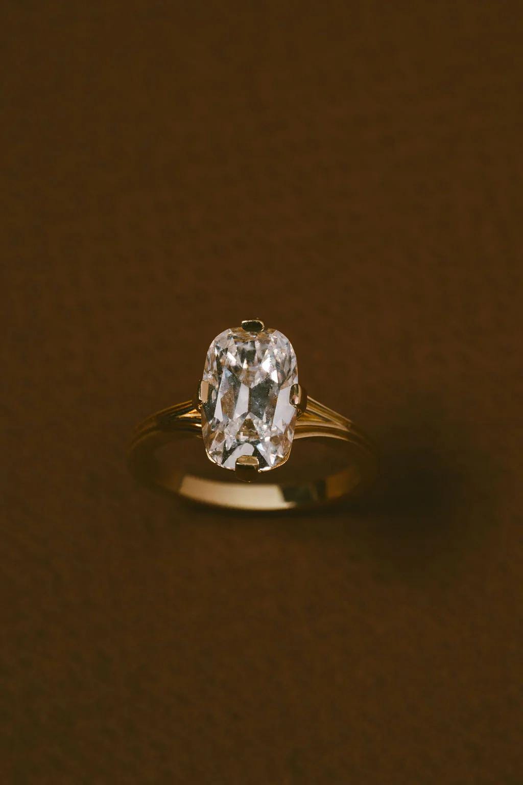 Experience the romance of a bygone era with this stunning Elongated Old Mine Cut Moissanite Ring.